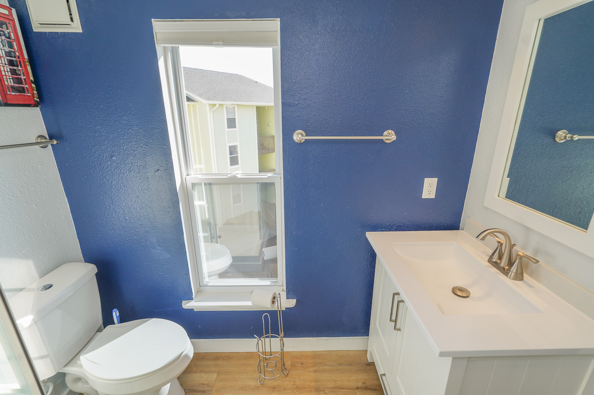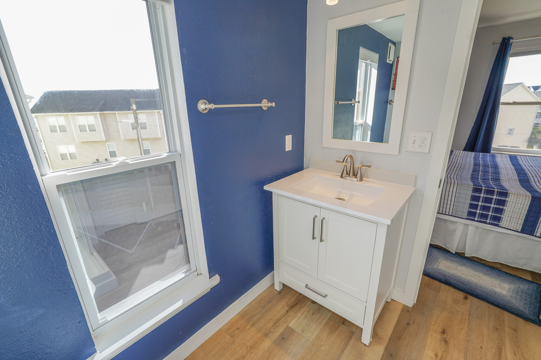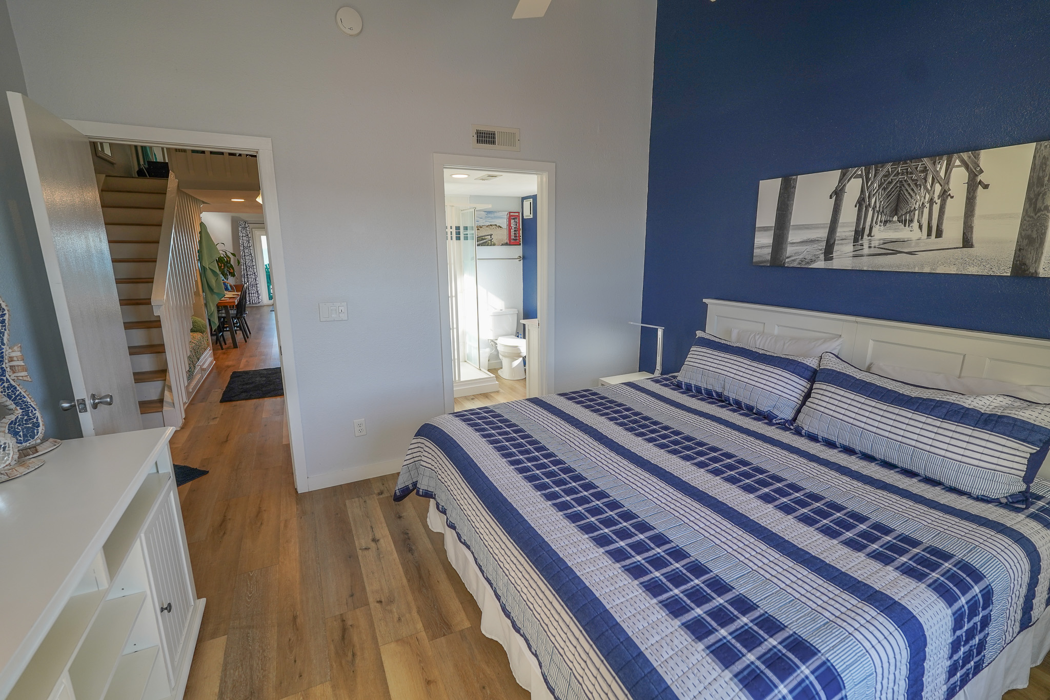 | 🌅 The View You'll love the amazing view from the third-story beachfront balcony overlooking both the beach and the ocean. Perfect for sipping morning coffee while enjoying the sunrise. | 🛏️ Loft Sleeping Area Comfy sleeping arrangements for up to four with memory foam mattresses on the queen bed and twin bunk beds. Sliding curtains offer privacy both for the loft and between beds. |