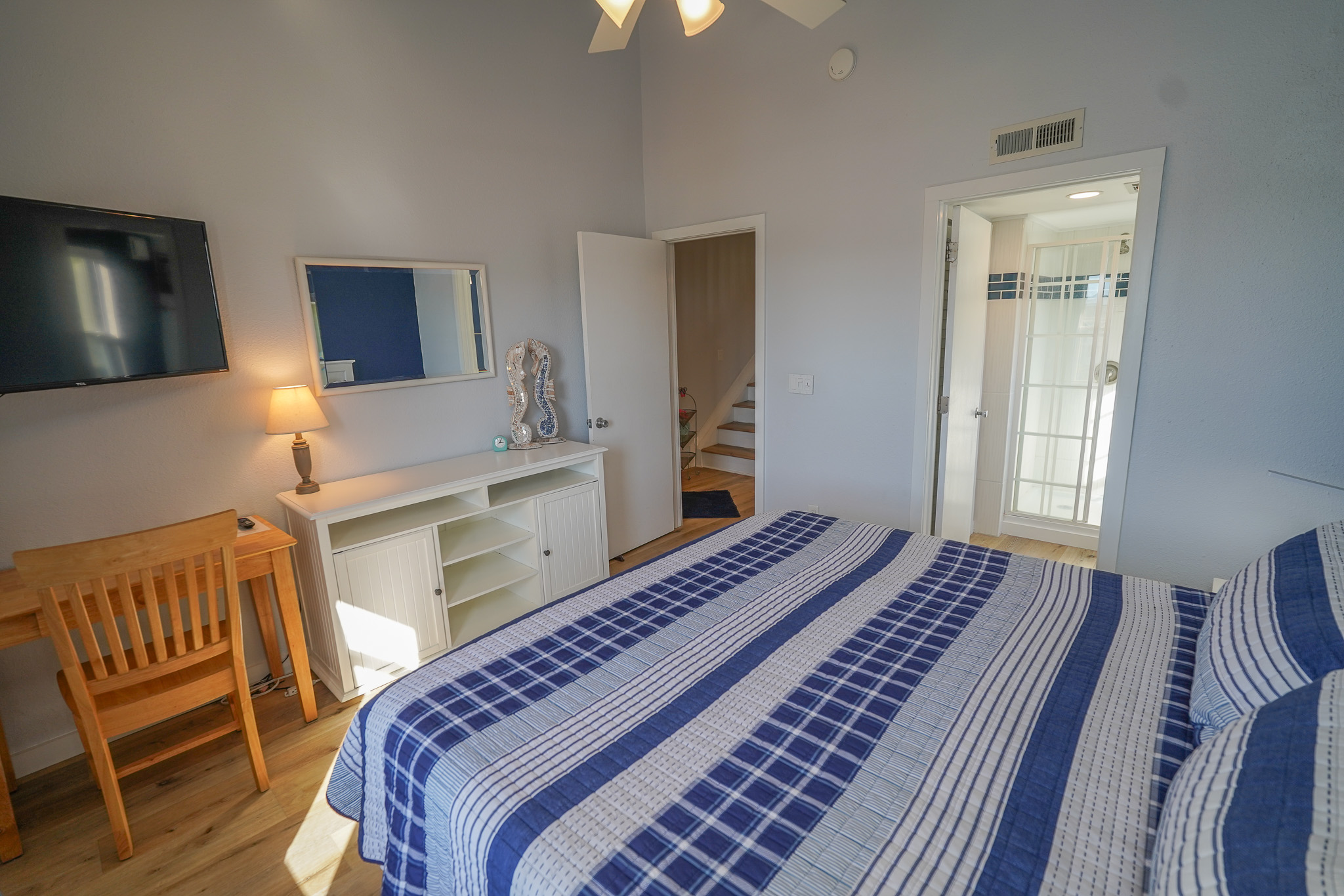 🌅 The View You'll love the amazing view from the third-story beachfront balcony overlooking both the beach and the ocean. Perfect for sipping morning coffee while enjoying the sunrise. 🛏️ Loft Sleeping Area Comfy sleeping arrangements for up to four with memory foam mattresses on the queen bed and twin bunk beds. Sliding curtains offer privacy both for the loft and between beds.